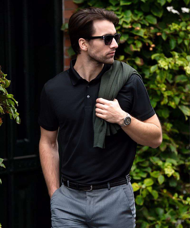 DETAILS: Fine gauged polyester piqué. Shirt collar stand. Placket with three buttons. SUSTAINABILITY: Reach. Global Compact. Amfori. Accord. OEKO-TEX