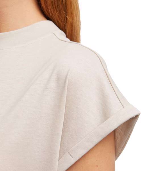 Loose straight fit. Ends above the ankle. Long side slits. Folded-up sleeve hem. High ribbed crew neck. Contains 100% OCS-certified organic cotton, certified by Control Union CB-CUC-1131896.