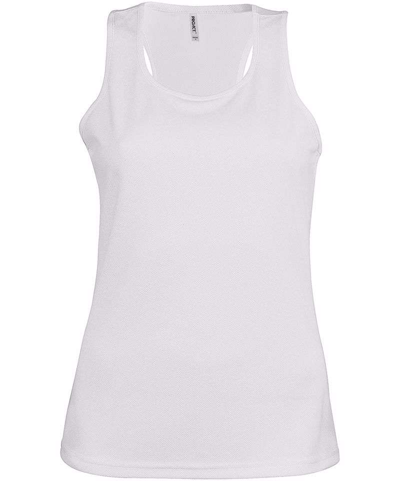 100% Polyester. Quick drying Lightweight fabric. Racer back style. Bound neck and armholes. Twin needle finishing. BSCI certified. Oeko-Tex certified.