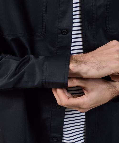 Lightweight overshirt with a spacious unisex fit offering a fadeless finish that locks in colour for 20+ washes. Soft collar style. Self-colour button-through. Two button-down chest pockets. Single-button cuff and sleeve guard. Curved hem. Back yoke for shape and fit. Twin-needle stitching throughout. Contains certified recycled polyester. Washable to 60°C.