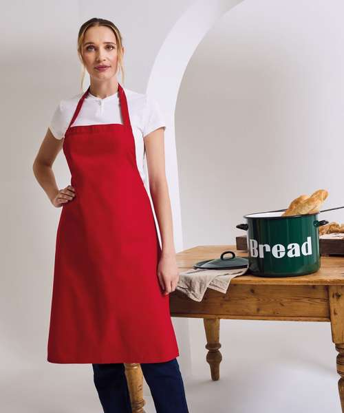 A heavyweight and durable bib apron made with 100% certified organic cotton. Available in twenty popular colours with self-fabric waist ties and neckband.