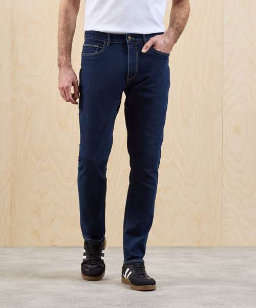 Men’s classic straight-leg jeans with a fade-resistant finish tested to 20 washes. Durable fabric fit for everyday comfort with elastane for stretch. Designed with belt loops, a metal button and a covered zip fly. Functional side-stitched pockets, rivets and stitched coin pocket with reinforced bar tacking. Stitched v-shape yoke and two patch pockets to the back. Classic jean styling with twin-needle stitching and metal hardware. Responsible fabric sourcing. Always Indigo contains certified recycled polyester. Available in regular leg (31"/79cm) and long leg (34"/86cm).
