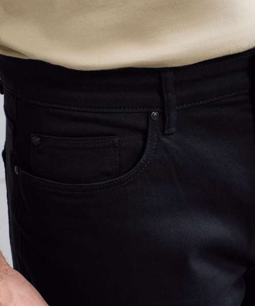 Stay Black: 98% Cotton, 2% Elastane. Always Indigo: 80% Cotton, 19% Polyester, 1% Elastane