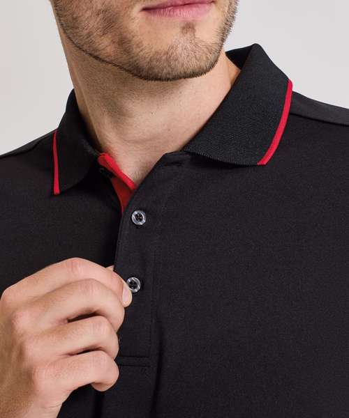 A smart choice for businesses looking for workwear that reflects company branding, these polo shirts offer a two-tone contrast colouring. The ribbed knit collar and cuffs is colour tipped as is the neckband and placket. There is a three button fastening on the placket for a casual unbuttoned look or smart fastened up style. The Coolchecker fabric is designed to draw moisture away from the body and encourage air flow, so the wearer remains fresh and cool throughout the day. Side panels create an aesthetically pleasing fitted style for men.