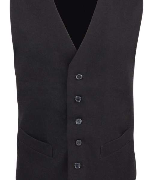 A men's waistcoat with five buttons and two functional watch pockets makes for a really stylish piece of hospitalitywear. This waistcoat is fully lined and comes with a satin back where there is a buckle adjuster to for a more fitted appearance.