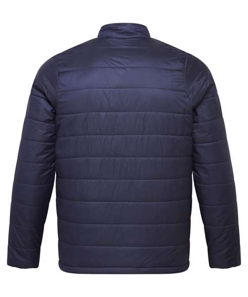 Men’s padded zip-through jacket with horizontal stitching to form baffles, ensuring an even distribution of insulation. Covered zip with chin guard and zip guard to the inner. Styled with a cadet collar. Two welt jet zipped side pockets with a single open pocket to the inner for handy storage. Elasticated cuffs measuring one inch wide. Full embroidery access to the entire jacket through an internal zip in the lining. Lightweight and folds downs easily into its own stuff sack. Made with 100% certified recycled fabrics.