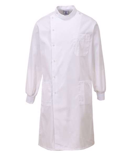 Durable polycotton fabric with Texpel stain-resistant finish. Extremely water resistant PFAS free Texpel™ Splash Eco fabric finish, water beads away from fabric surface. Ribbed cuffs for added comfort. Three pockets for ample storage. Ring stud front for easy opening. Two lower patch pockets. Premium stain-resistant finish repels oil, water and grime.
