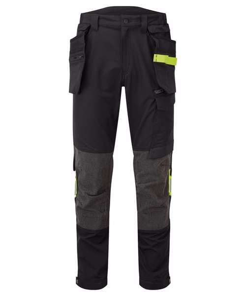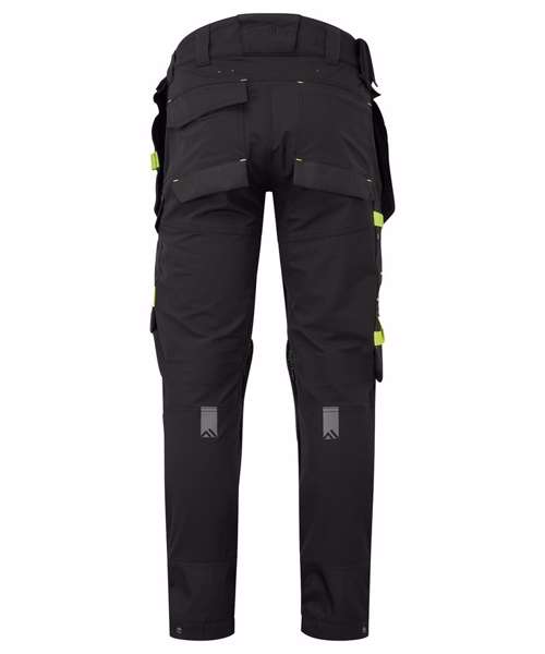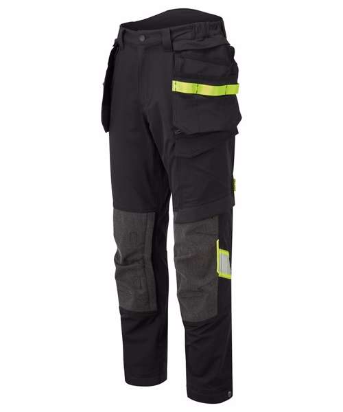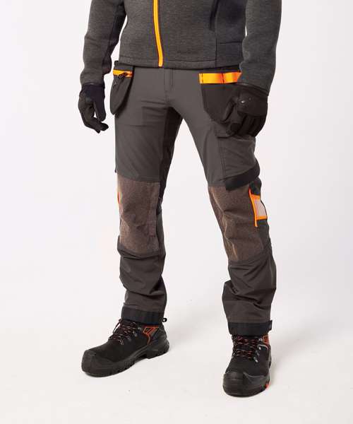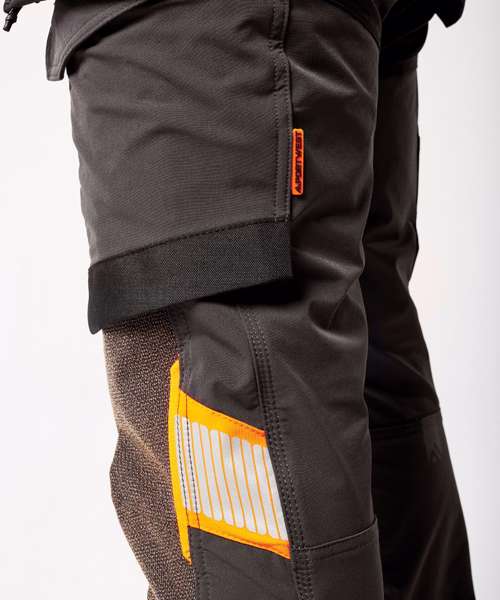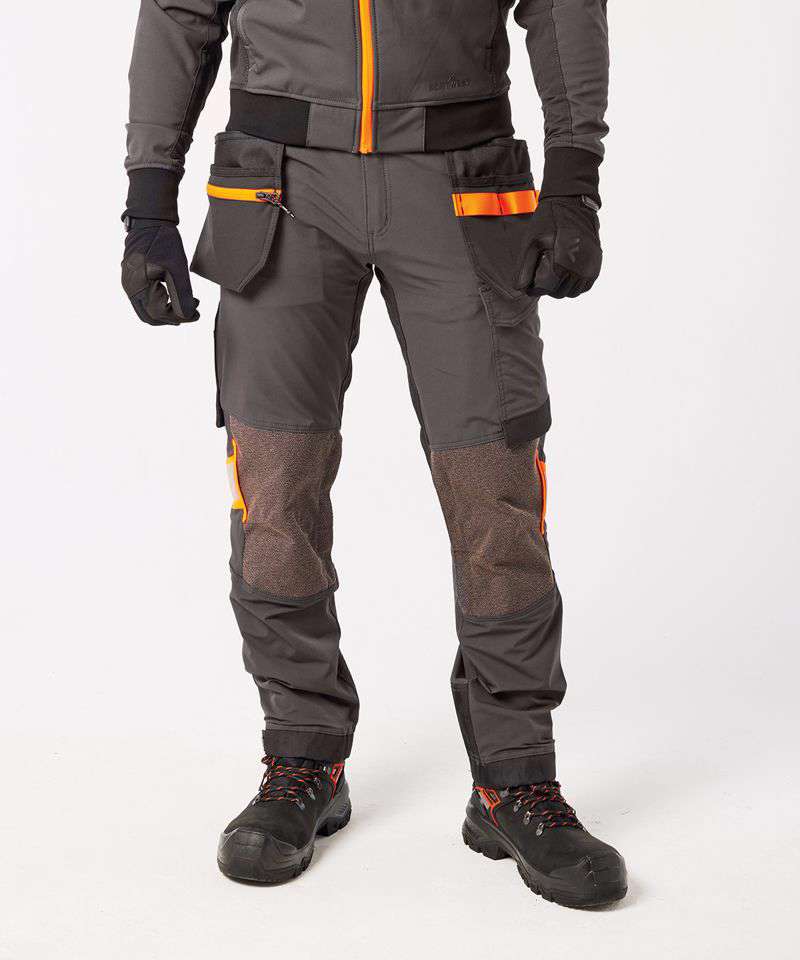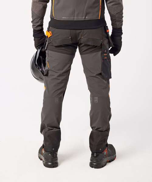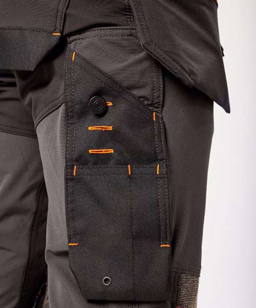 Four-way stretch nylon fabric for added durability and ease of movement. Laser-cut holes for added ventilation. Side-entry kneepad pockets. Two-tier kneepad pockets offer two positioning options. Inner boot clip secures trousers to the boot and prevents them from riding up. Multiple utility pockets provide ample storage. FlexiHem™ hem adjuster secures trousers at the ankle, holding them firmly in place to reduce entrapment. 17 pockets for ample storage, including a rule pocket. Zip-off holster pockets for added versatility. One D-ring for keys, tools or ID badge holder. Two side pockets. Two hammer loops. One welt pocket. Two back pockets with one open and one featuring a flap. Concealed mobile phone pocket. One thigh pocket with zip closure. One loop for ID card, keys or tools. One rule pocket. One pen pocket. One spanner pocket. Glove holder on waistband for secure storage of work gloves. CorePro reinforced holster pockets with webbing loops for tools. CorePro reinforced thigh pocket. CorePro Armour reinforcement. Gripper elasticated inner waistline helps keep upper body garments in place. High-rise back waistband ensures protection in all working positions.