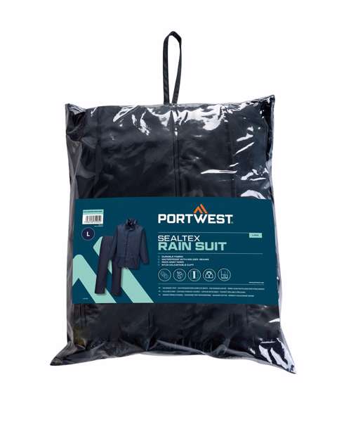 Extremely water-resistant, PFAS-free Texpel™ Splash Eco fabric finish – water beads away from fabric surface. Waterproof with welded seams to prevent water penetration. Stud-adjustable cuffs for a secure fit. Storm flap front to protect against the elements. Stud-adjustable hems for a secure fit. Fully elasticated waistband for ultimate wearer comfort. Drawcord hood and hem for a secure and comfortable fit. Two pockets for secure storage. Retail bag aids presentation for retail sales. Jacket-and-trouser set for convenience. CE certified. UKCA marked. EN 343 Class 4:1 X WP 5,000mm.
