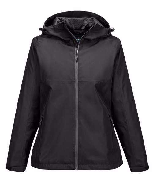 Waterproof and breathable with taped seams to prevent water penetration. Ideal for corporatewear and custom finishes. Zipped vents at underarm for extra breathability. Ergonomically shaped hood for a perfect fit. Pre-bent sleeves allow for increased freedom of movement. Hook-and-loop cuffs for a secure fit. Chin guard with internal storm flap provides extra comfort. Print access for corporate branding. Three pockets provide ample storage. Zipped pockets. CE certified. Women’s fit. Extremely water-resistant, PFAS-free Texpel™ Splash Eco fabric finish – water beads away from fabric surface. Waterproof with taped seams, preventing water penetration.
