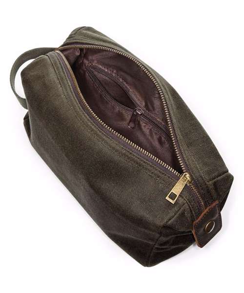 This Heritage waxed canvas wash bag is quintessentially British in its style and craftsmanship. Featuring a curated selection of heritage-inspired details like brass effect fittings and genuine leather accents, this waxed cotton canvas makes one stylish travel caddy.