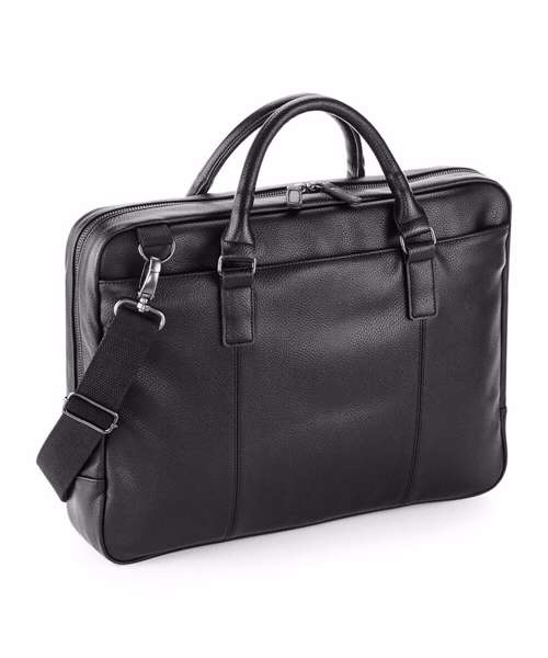 TearAway label for ease of rebranding. Full length zippered front pocket for ease of decoration. Self-fabric carry handle.Gunmetal fittings. Padded laptop compartment. Laptop compatible up to 15.6".Padded internal iPad / tablet compartment. Fully lined in pinstriped fabric. Internal organisation pockets. Zippered internal pocket. Detachable adjustable shoulder strap.