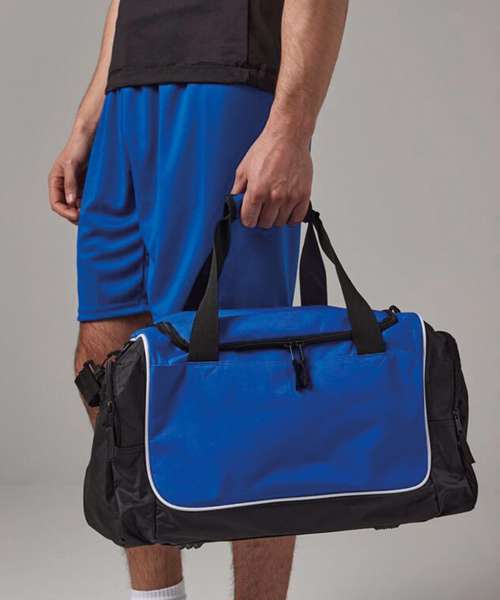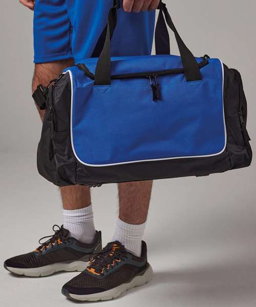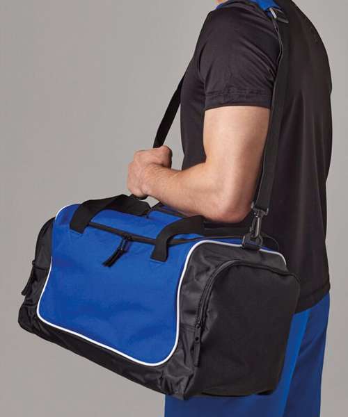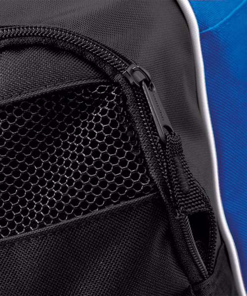 Compact size to fit most lockers, with detachable adjustable shoulder strap and pad. End pockets, one with mesh ventilation panel. Protective base feet. Internal baseboard. Padded hand grip.