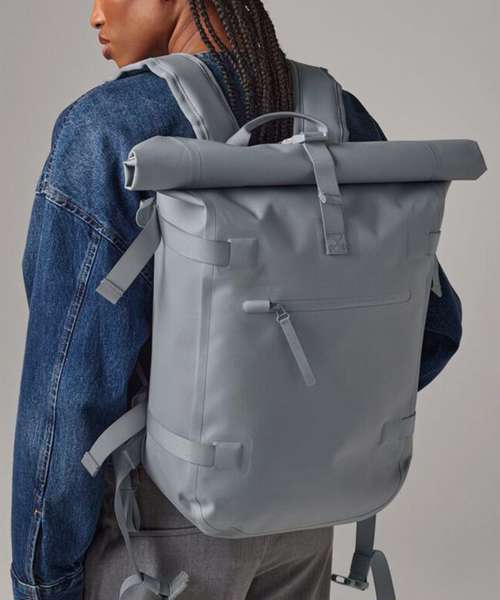 Bringing all the sleek style benefits of a relaxed roll-top backpack, with the addition of waterproof PU-coated fabric, this is where fashion meets function. This is a must for those who commute on foot or by bike, complete with multiple weatherproof compartments so things like technology and paperwork stay dry and protected in all seasons. Also available in a lite version (QS573), waterproof roll-tops are the epitome of practical, contemporary styling.
