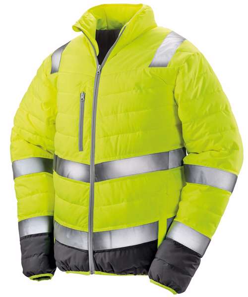 EN ISO 20471:2013+A1-2016 Class 2 sizes (L-4XL) Class 3. RIS-3279-TOM ISSUE 2:2019 CLASS 2 (orange only). Super soft feel: lightweight and warm. Easy to pack, compact stowage. Zipped chest and side pockets. Dark lower panel masks grime. Quiet to wear. Reflective shoulder, body and sleeve bands. Grey colour lining and trim. Soft bound cuff and hem. Longer back panel. Stand-up collar. Hang tag loop. YKK main zip. Inside pocket. Ready to brand tag free. Quiet to wear. Decorating methods: Embroidery. Decorators access point: Inside left chest and back hidden zips.
