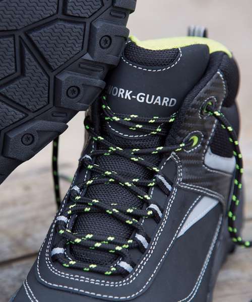 This breathable, water resistant high top safety boot blends protection and style with ease. S3 classification, anti static and SRC slip resistance along with scuff cap and reflective details combine to bring you the next generation of RESULT's safety footwear choices. In a classic black nubuck leather with understated green flashes you can feel safe and secure in the Blackwatch! Conforms to EN 20345:2011 S3 SRC.