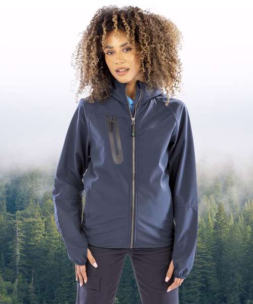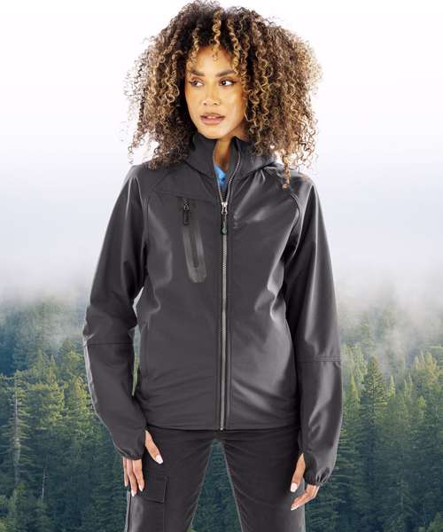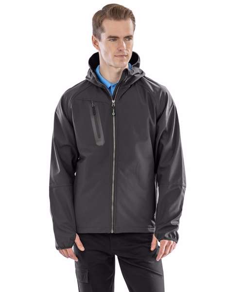 Amazing, soft-feel, hooded unisex softshell jacket with appealing lightweight drape. Ideal for printing.