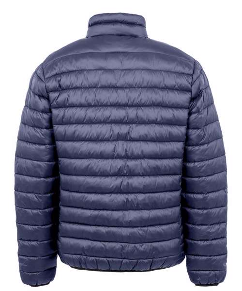 Showerproof. Breathable. Windproof. Heavy-duty zip-through collar with chin guard and zip pull. Black elasticised bound cuff and hem. Soft-feel poly wadding. Zipped pockets. Inside pockets. Hand loop. Contrast underarm horizontal panelling. Fashionable quilted design. Recycled fabric.