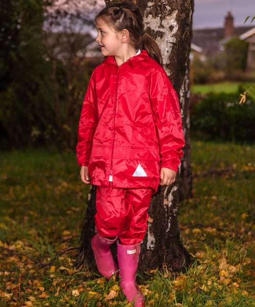 Taped seams. Hood with tear release fastening. Full front zip fastening. 2 spacious front pockets to jacket and 2 access pockets to trousers. Inner storm cuffs. Mesh ventilated back. Adjustable drawcord hem on jacket (EN14682 compliant). Elasticated waist on trousers. Adjustable snap closing ankles on trousers. Zip closing stuff bag. Triangles incorporating 3M™ Scotchlite™ reflective materials. Contains recycled material. Decoration Guidelines:Decorating methods: Direct print, Transfer print & Screen print transfer. Decorators access point: Open.