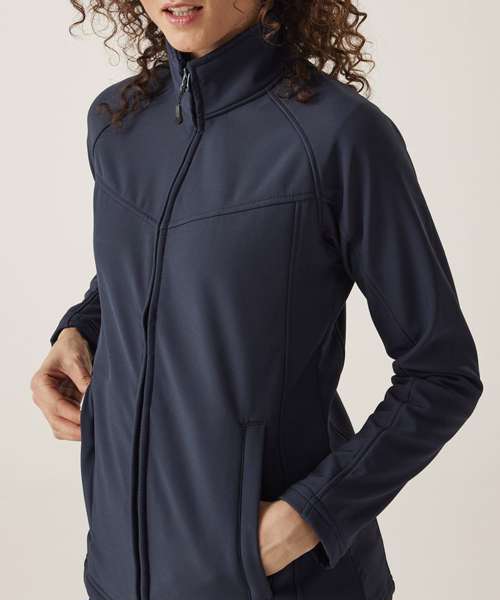 Opt for styled protection with the Uproar interactive softshell. The Uproar is made with warm-backed Softshell fabric that's super-soft to handle. The fabric comes with a natural stretch, keeping you comfortable. It also has a water-repellent finish, perfect for rain fall. The shaped fit provides a flattering style.
