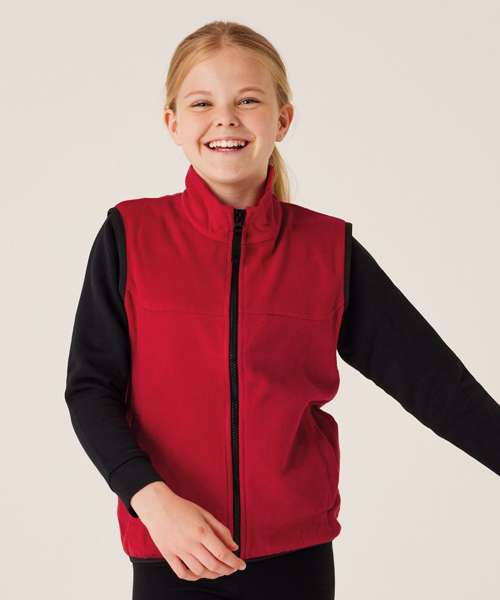 The kids microfleece kids bodywarmer from Regatta Professional is the perfect layer for mini adventurers. This gilet is made with comfy and lightweight microfleece, providing warmth without weight. There’s a brushed side for comfort and an anti-pill side for long-lasting wear.