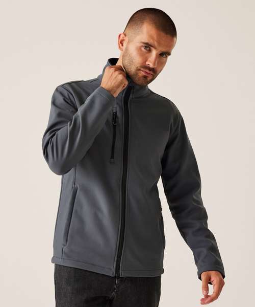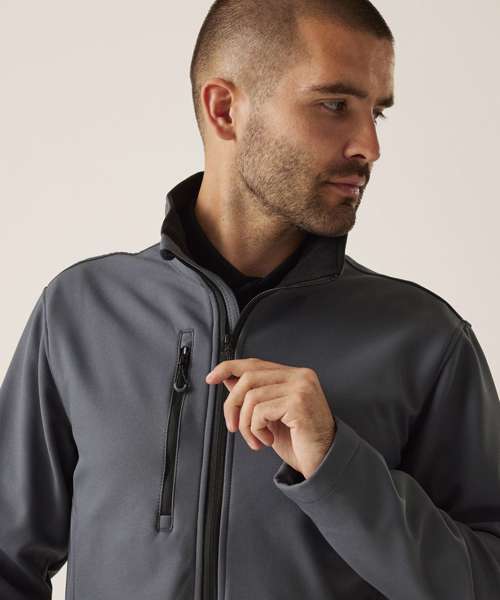 Made from 100% recycled softshell. Fully printable jacket is water-repellent and wind-resistant. Quick-drying, super-soft material.