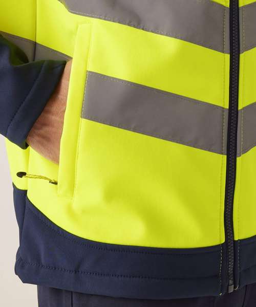Fabric information - Warm backed woven Softshell XPT waterproof and breathable 3-layer membrane fabric. Special features - EN ISO 20471:2013 +A1:2016 Class 2. 2 zipped lower pockets. Adjustable shockcord hem. Full length zip with inner zip and chin guard.1 chest pocket. Orange colour-way also conforms to RIS-3279/TOM when worn with RIS-3279-TOM Class 2 upper body clothing. ID Reflection - angled chevrons allow people to know which way you are facing towards or away from them at a quick glance, increasing safety in low light. This product has no external logo branding.