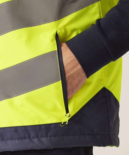 Fabric information - Waterproof and breathable Isotex 10000 100% polyester fabric. Windproof fabric. Thermo-Guard insulation. Taped seams. Special features - EN ISO 20471:2013 +A1:2016 Class 2. 2 zipped lower pockets. Adjustable shockcord hem. Double storm flap. Orange colour-way also conforms to RIS-3279/TOM when worn with RIS-3279-TOM Class 2 upper body clothing. ID Reflection - Our angled chevrons allow people to know which way you are facing towards or away from them at a quick glance, increasing safety in low light. This product has no external logo branding.