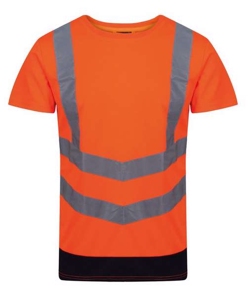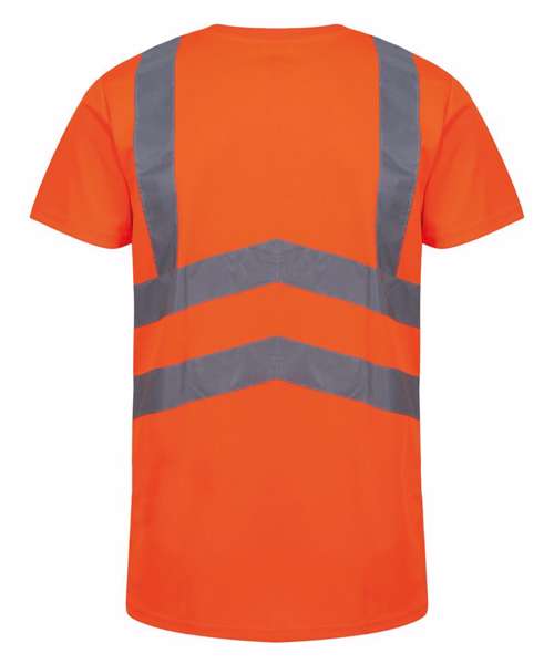 100% quick-dry polyester piqué fabric. Conforms to EN ISO 20471:2013 +A1:2016 Class 2 (orange also RIS-3279/TOM). Natural wicking fabric. Crew neck.