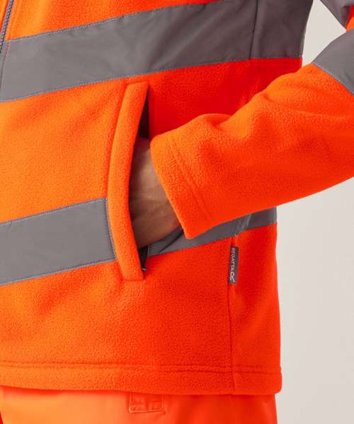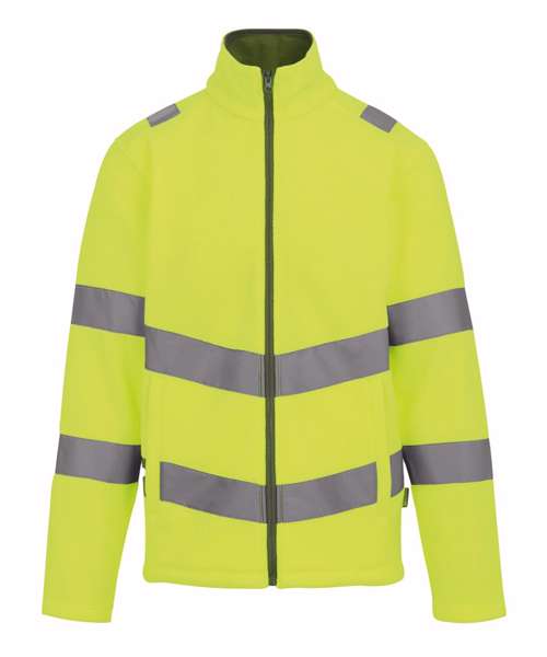 280 series anti-pill Symmetry fleece. Certified to EN ISO 20471:2013 A1:2016 Class 3. Orange colourway also conforms to RIS-3279-TOM. Two zipped lower pockets. Made with recycled content. ID Reflection – angled chevrons inform whether you are facing forwards or away.