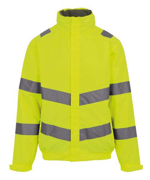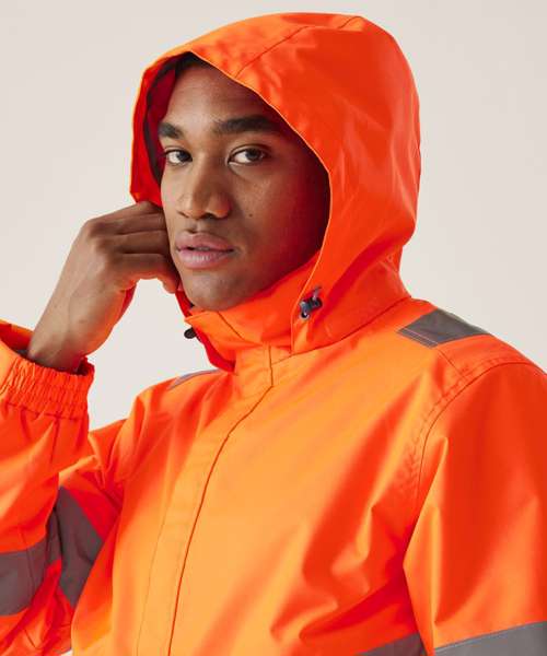 Waterproof Hydrafort 100% polyester Oxford 300D fabric. Certified to EN ISO 20471:2013 A1:2016 Class 3. Orange colourway also conforms to RIS-3279-TOM. Conforms to EN343 Class 3:1. 220 series anti-pill Symmetry fleece-lined body. Thermo-Guard insulation in sleeves. Made with recycled content. Waterproof taped seams. Two lower zipped pockets. Inner patch security pocket. Concealed hood with adjusters. Elasticated and adjustable cuffs. Elasticated hem. ID Reflection – angled chevrons inform whether you are facing forwards or away.