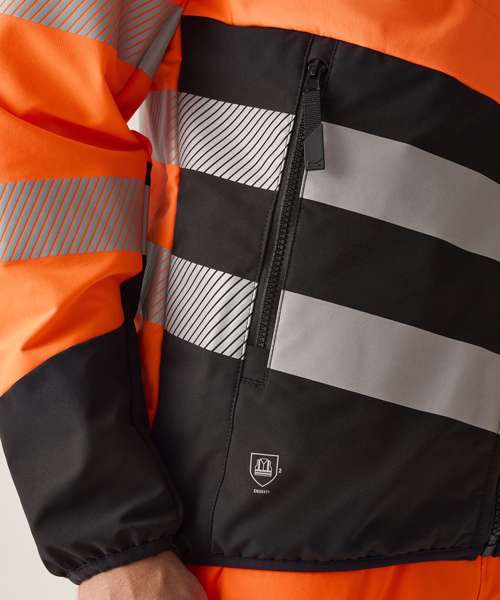 Stay visible and protected in the Hi-vis two-tone thermal jacket from Regatta Professional. Crafted with durable Hydrafort polyester and waterproof to EN ISO 20471 Class 2 standards, it’s built to perform in demanding conditions. Thermoguard insulation adds dependable warmth, while angled ID reflection chevrons improve visibility in low light.