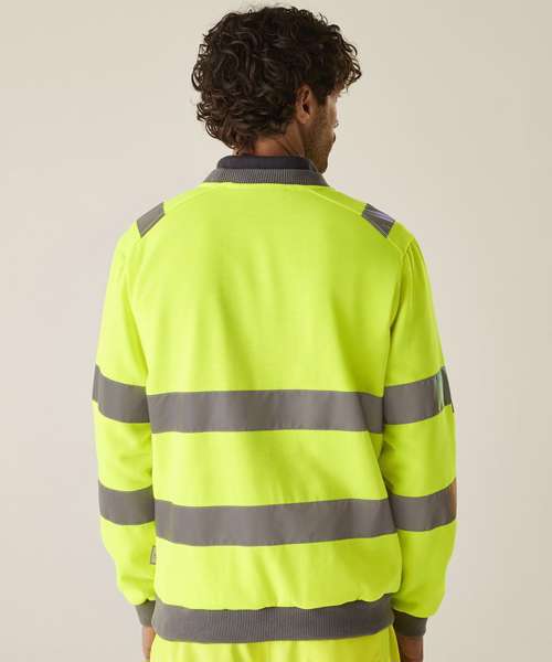 The Hi-vis Pro contract crew neck sweatshirt, from Regatta Professional, delivers comfort, visibility and durability on the job. It’s made from brushed polyester fleece and features a classic crew neck and ribbed trims. Certified for safety.