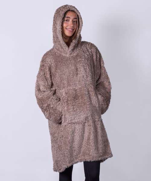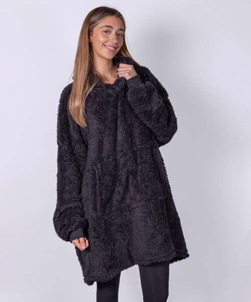 Super-soft teddy fleece hoodie. Oversized – one size fits most. Large pocket keeps your hands warm.