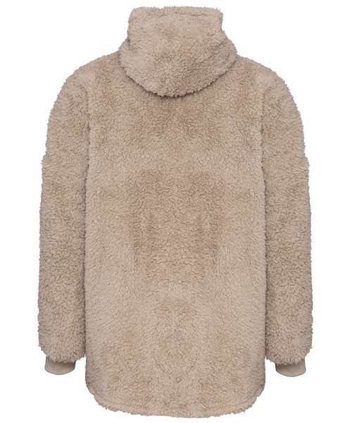 Super-soft teddy fleece with large hood and pocket.
