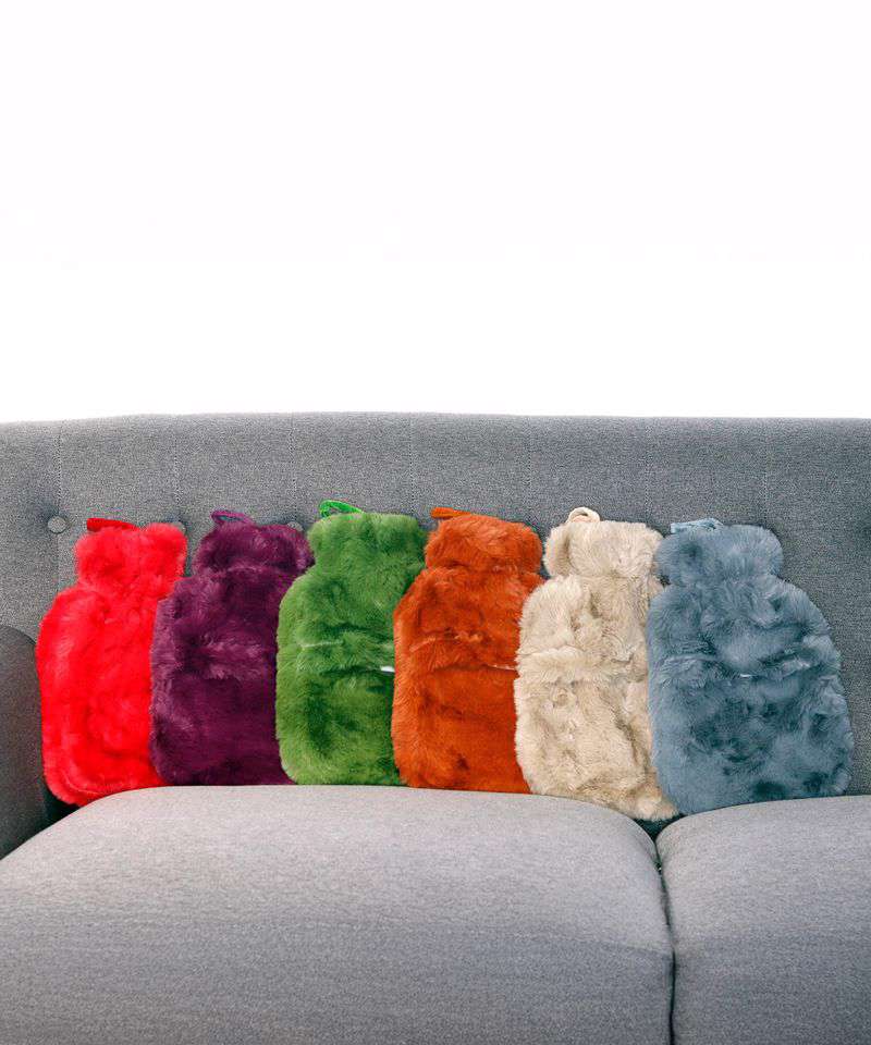 Hot water bottle with super-luxurious faux fur cover. 100% polyester cover, natural rubber bottle (conforms to BS1970 : 2012).