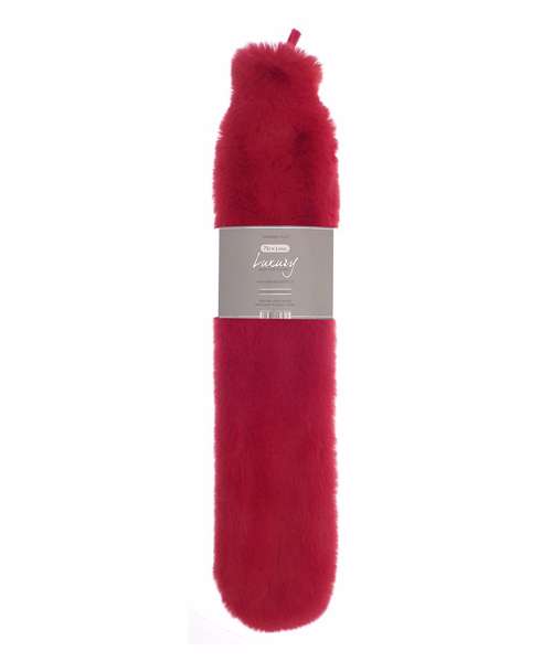 Long hot water bottle with super-luxurious faux fur cover. 72cm in length. 100% polyester cover, natural rubber bottle (conforms to BS1970 : 2012).