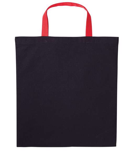 Two-tone cotton shopper. Short handles, 35 x 2.5cm. Inside hemmed sewing. Cross-stitches at handle. Perfect print surface.