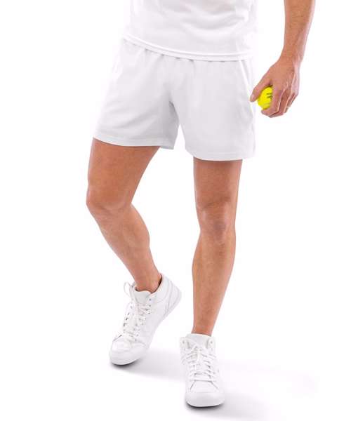Hi-Tech stretch for comfort and shape retention. Elastic waistband with drawcord. Twin-needle decorative stitch. Two zip-closing side pockets. Integral inner shorts with a pocket. Quick-drying fabric. Side vents. Made with recycled polyester and elastane.
