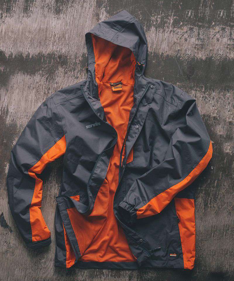 Robust all-weather waterproof jacket made from hard-wearing ripstop fabric with taped seams. Lightweight mesh lining reduces bulk for freedom of movement when working. Multiple secure zipped pockets, adjustable hood, hem and cuffs for water-tight fit.