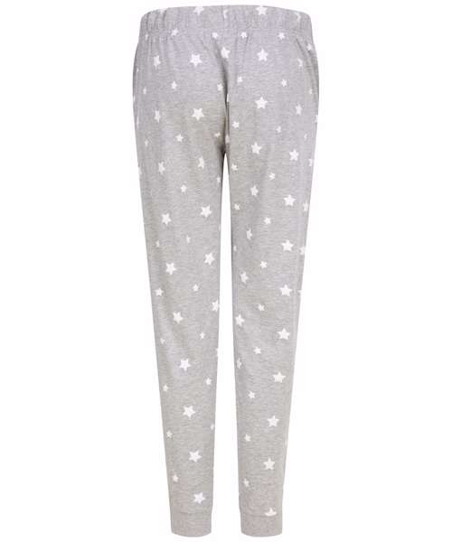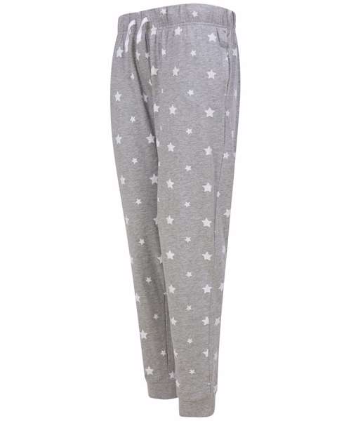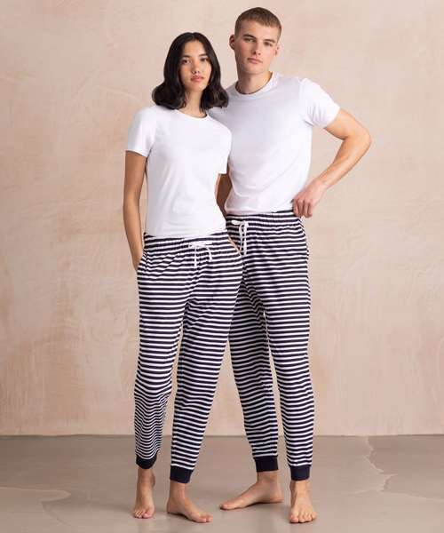 Stretch lounge pants with elasticated waistband and drawcord. Self-fabric cuffed hem with side seam pockets. Tear-out label.