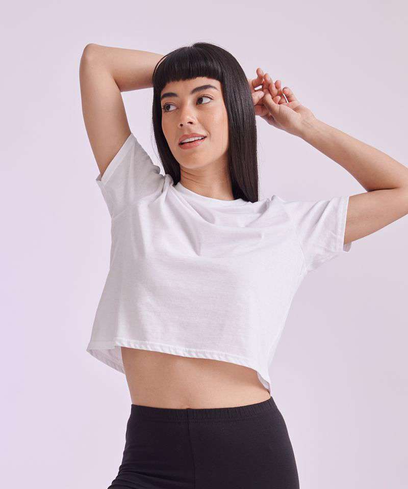 Keep it cool in this cropped boxy T, with its relaxed oversized shape and tear-out label for easy rebranding.