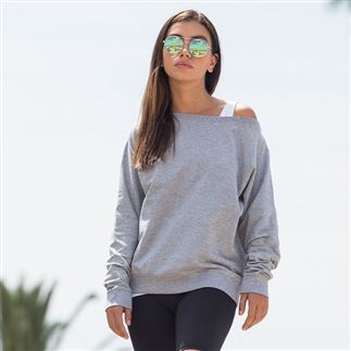 Layer up, cool down. This sweat has a relaxed fit and drape with wide neckline and raglan sleeves for comfortable lounging. Ribbed cuffs, hem and neckline with twin-needle stitching ensures a premium finish. Tear-out label for easy rebranding.