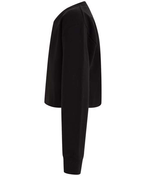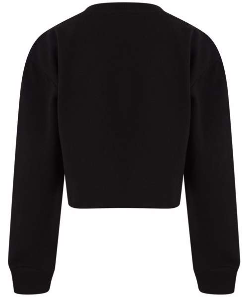 Tear-out label. Oversized sweatshirt with cropped raw hem. Set-in sleeves, with dropped shoulders. 2x2 ribbed neck and cuffs. Single Jersey back neck tape.