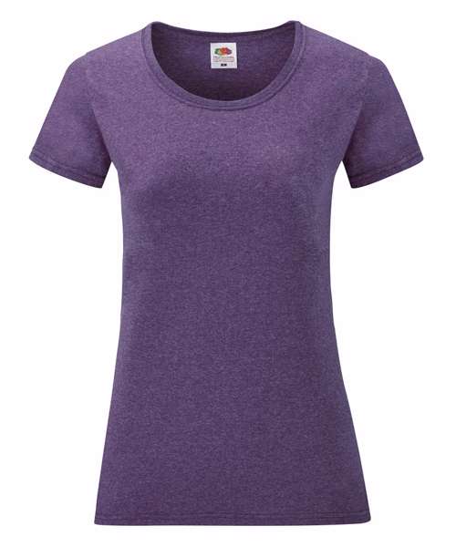 With a fine knit gauge for enhanced printability, the women's Valueweight T is perfect for many applications including retail, licensing and tourism. The style offers a flattering, feminine fit, with shaped side seams and a cotton/Lycra® ribbed crew neck and is available in a range of attractive colours, including eye-catching Marls Heather Purple and Heather Burgundy.