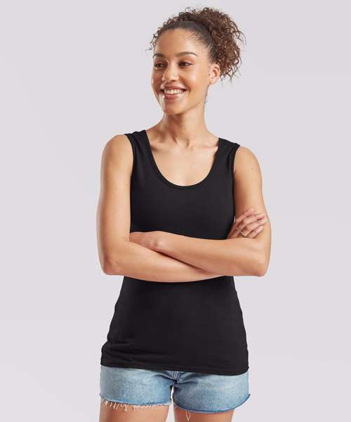 With a fine knit gauge to ensure enhanced printability, the women's Valueweight athletic vest is a classic choice suitable for all kinds of garment decoration. Shaped side seams make for a comfortable feminine fit, while self-fabric binding to neck and armholes creates a durable, clean-cut finish.
