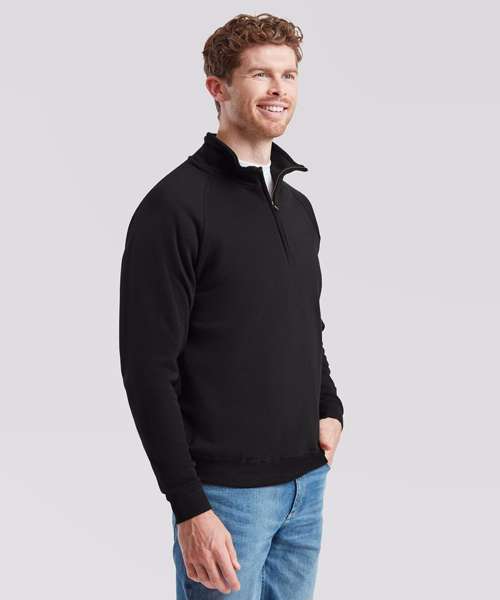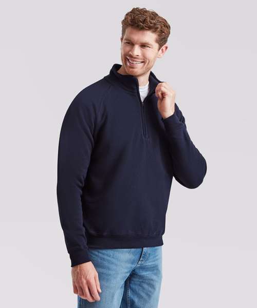 Available in a selection of colours with a covered metal zip for enhanced printability, the classic zip neck sweat is ideal for all kinds of garment decoration. Details include a single Jersey back neck tape for comfort and cotton/Lycra® waist and cuff ribs and a cadet collar for added warmth.