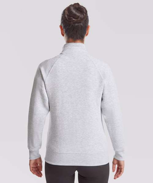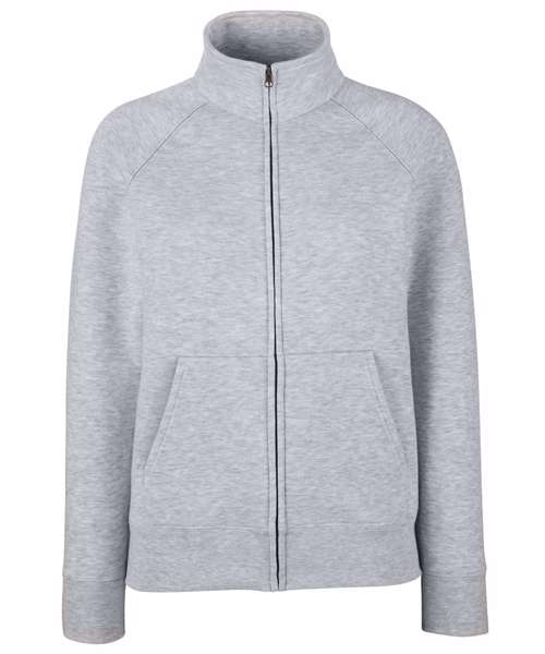 Featuring a 100% cotton face and covered metal zip for enhanced printability, the women's Premium sweat jacket is perfect for promotions, music merchandise, licensing, tourism and more. This feminine fit garment has two front pockets for multi-purpose use and a single Jersey back neck tape for comfort, while the cadet collar and cotton/elastane waist and cuff ribs provide everyday comfort and added warmth.