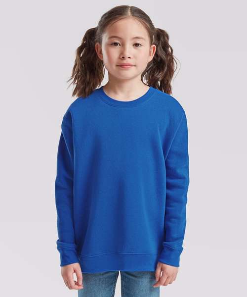With a 100% cotton face ensuring perfect printing and embroidery results and a wide range of colours to choose from, the kids premium set-in sweat is suitable for all kind of occasions. This super-soft garment features an inner brushed fleece and single Jersey back neck tape for comfort, while the cotton/elastane neck, waist and cuff ribs provide added comfort.