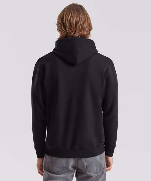 Ideal for work, tourism, event, leisure or casualwear, the Premium hooded sweat is available in a range of colours and features a 100% cotton face and double fabric hood. Details include a self-coloured flat drawcord and front kangaroo pocket, while a single Jersey back neck tape and cotton/elastane waist and cuff ribs provide easy movement and everyday comfort.